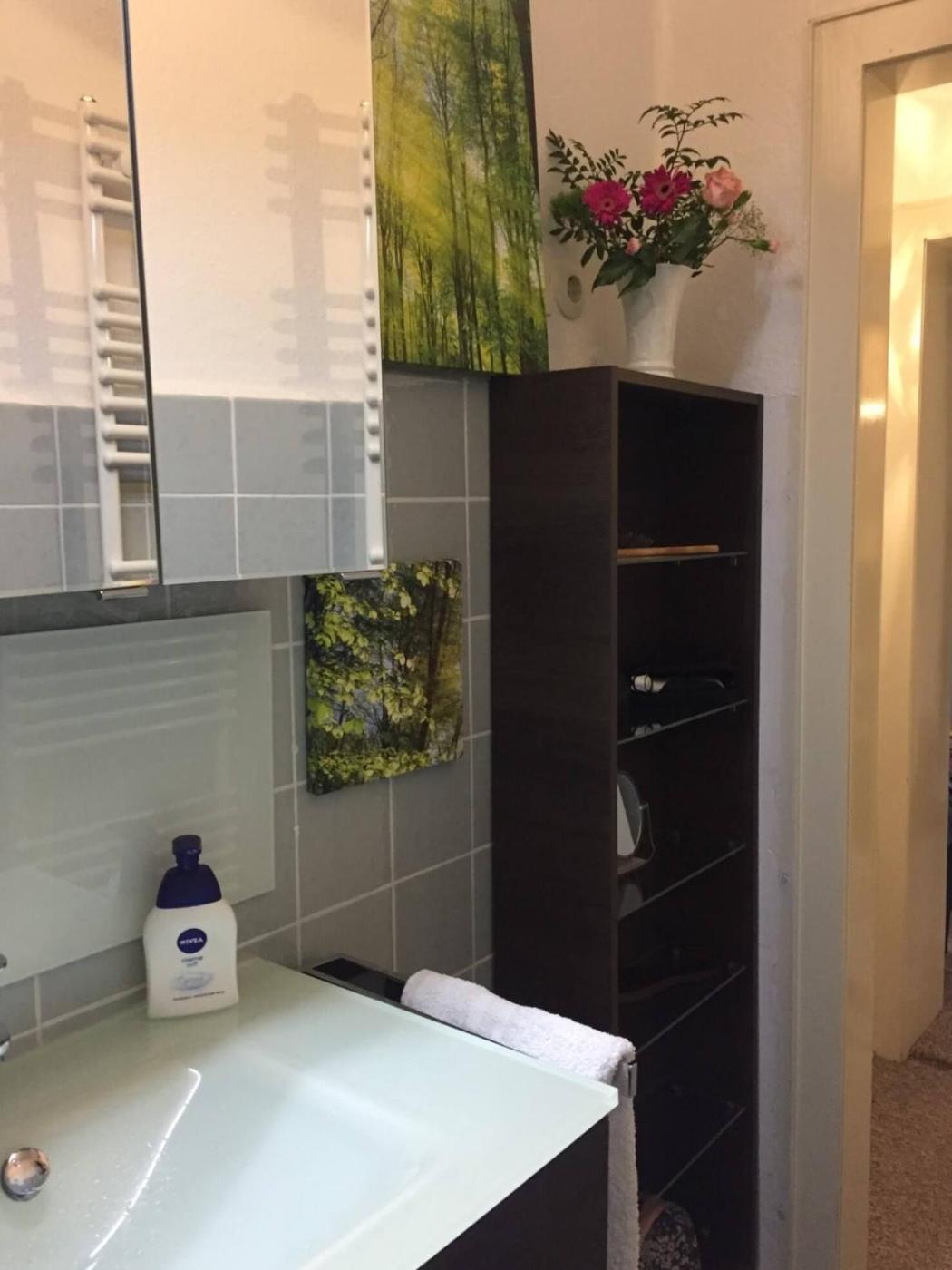 Apartment mit Balkon. This apartment has a south-facing balcony. It features a bedroom and a living room with a sofa, flat-screen TV with satellite channels and dining table for 4 people. The apartment is located on the 1st floor and can be reached by lift or stairs. Smoking is allowed on the balcony if you bring your own ashtray.