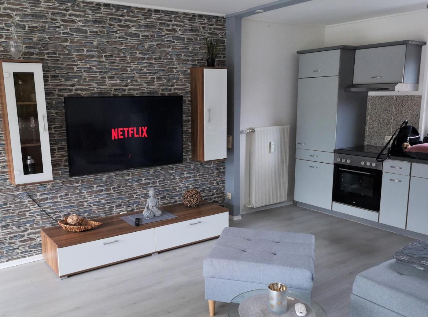 Apartment mit 1 Schlafzimmer. This apartment comprises 1 bedroom, a kitchenette and 1 bathroom with a shower and a hairdryer. Meals can be prepared in the kitchenette, which comes with a refrigerator, a dishwasher and an oven. This apartment provides heating and a flat-screen TV. The unit offers 1 bed.