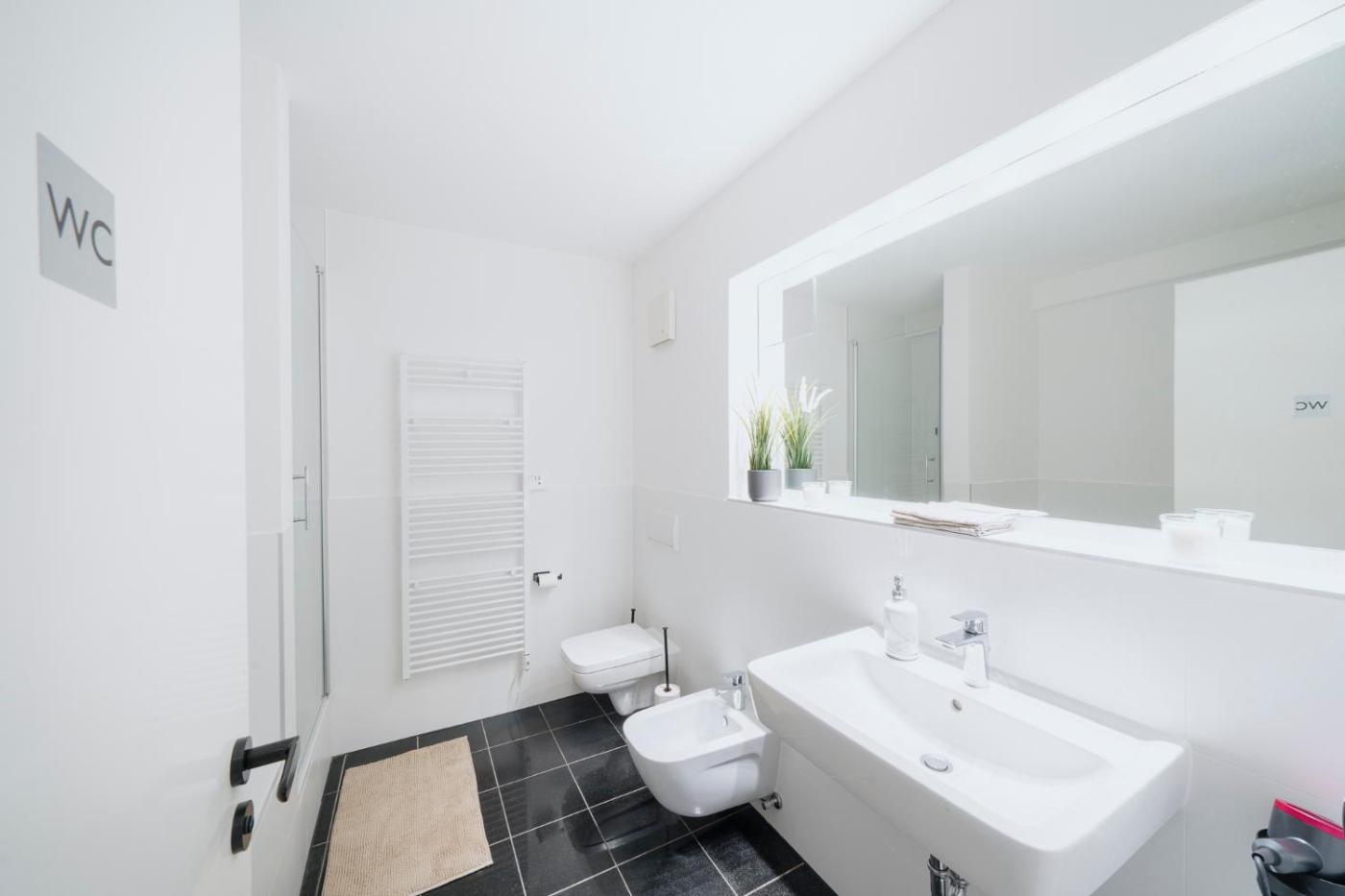 Apartment. This spacious apartment is comprised of 1 living room, 4 separate bedrooms and 1 bathroom with a hairdryer. The well-equipped kitchen features a stovetop, a refrigerator, a dishwasher and a microwave. The apartment offers a washing machine, a tea and coffee maker, heating, as well as a flat-screen TV. The unit offers 5 beds.