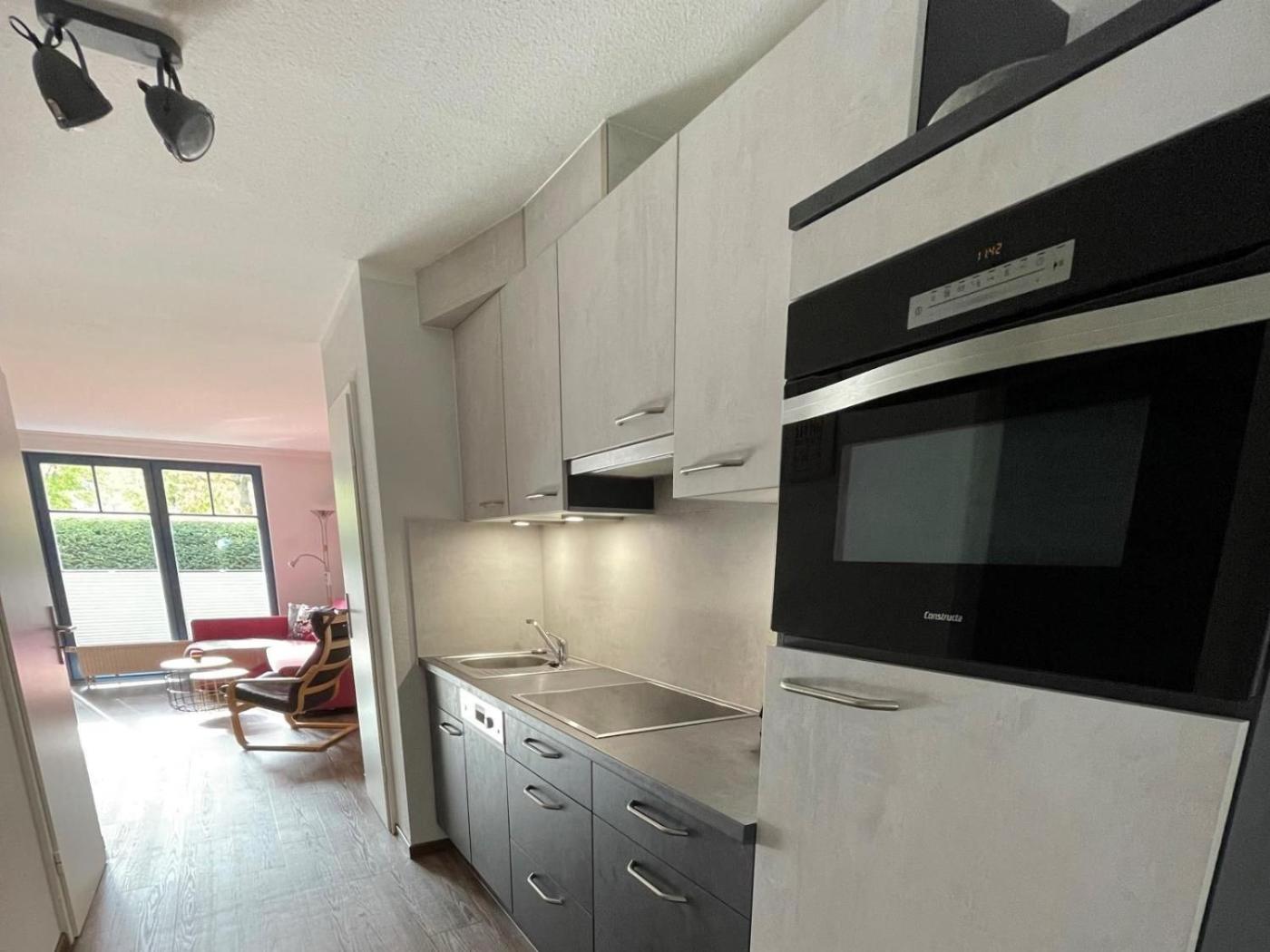 Apartment mit 1 Schlafzimmer und Terrasse. This apartment consists of 1 living room, 1 separate bedroom and 1 bathroom with a shower. The well-equipped kitchenette features a refrigerator, a dishwasher, an oven and a microwave. The apartment has a terrace. The unit offers 2 beds.