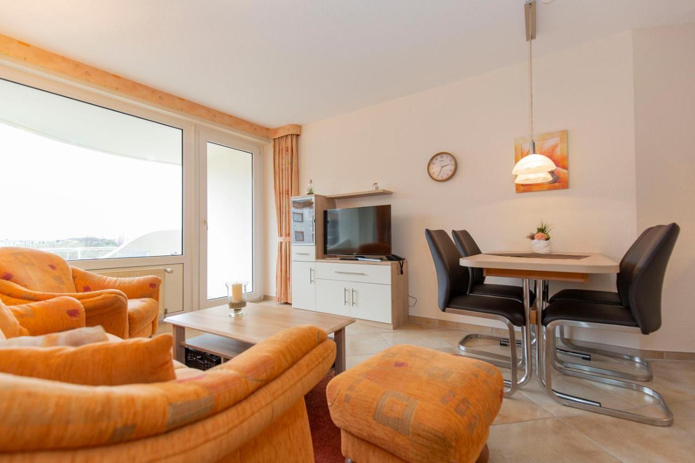 Apartment mit Balkon. This apartment boasts a pool with a view and a sauna. This apartment comprises 1 living room, 1 separate bedroom and 1 bathroom with a shower and a hairdryer. The well-equipped kitchen has a stovetop, a refrigerator, a dishwasher and kitchenware. This apartment features a washing machine, a coffee machine, a TV with cable channels and a balcony. The unit offers 2 beds.