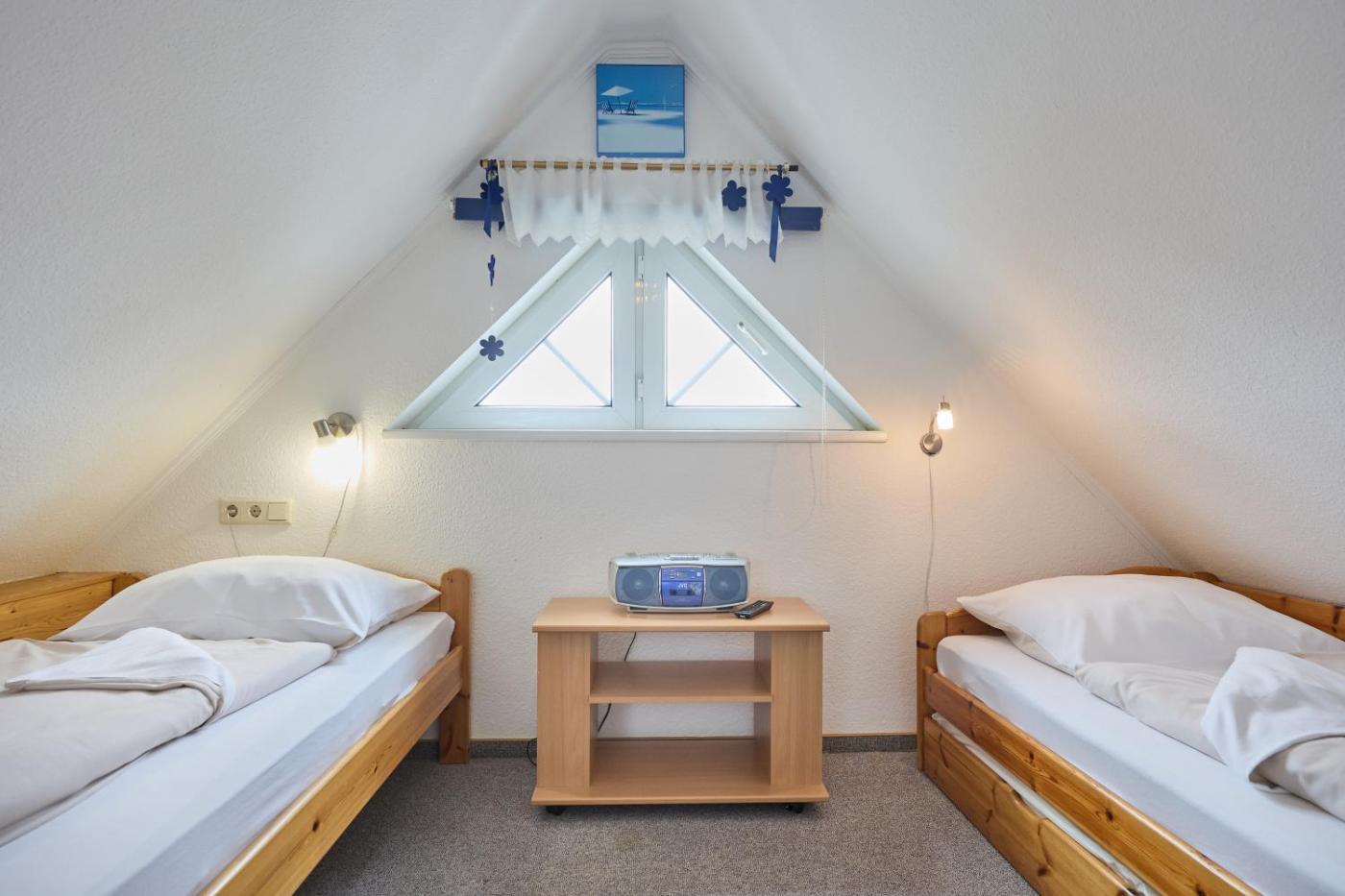 Die Unterkunft Neptun 10, FeWo 4 ist ausgestattet mit 2 Schlafzimmern, einer Küchenzeile mit einem Kühlschrank und einem Geschirrspüler, einer Waschmaschine und 1 Badezimmer mit einem Haartrockner. Es gibt einen TV und einen DVD-Player.