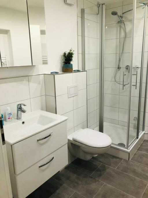 Apartment mit 1 Schlafzimmer. This apartment comes with 1 bedroom, kitchen and 1 bathroom with a hairdryer. The kitchen features a stovetop, a refrigerator and an oven. This apartment has a washing machine, a tea and coffee maker, a flat-screen TV and a balcony. The unit has 2 beds.