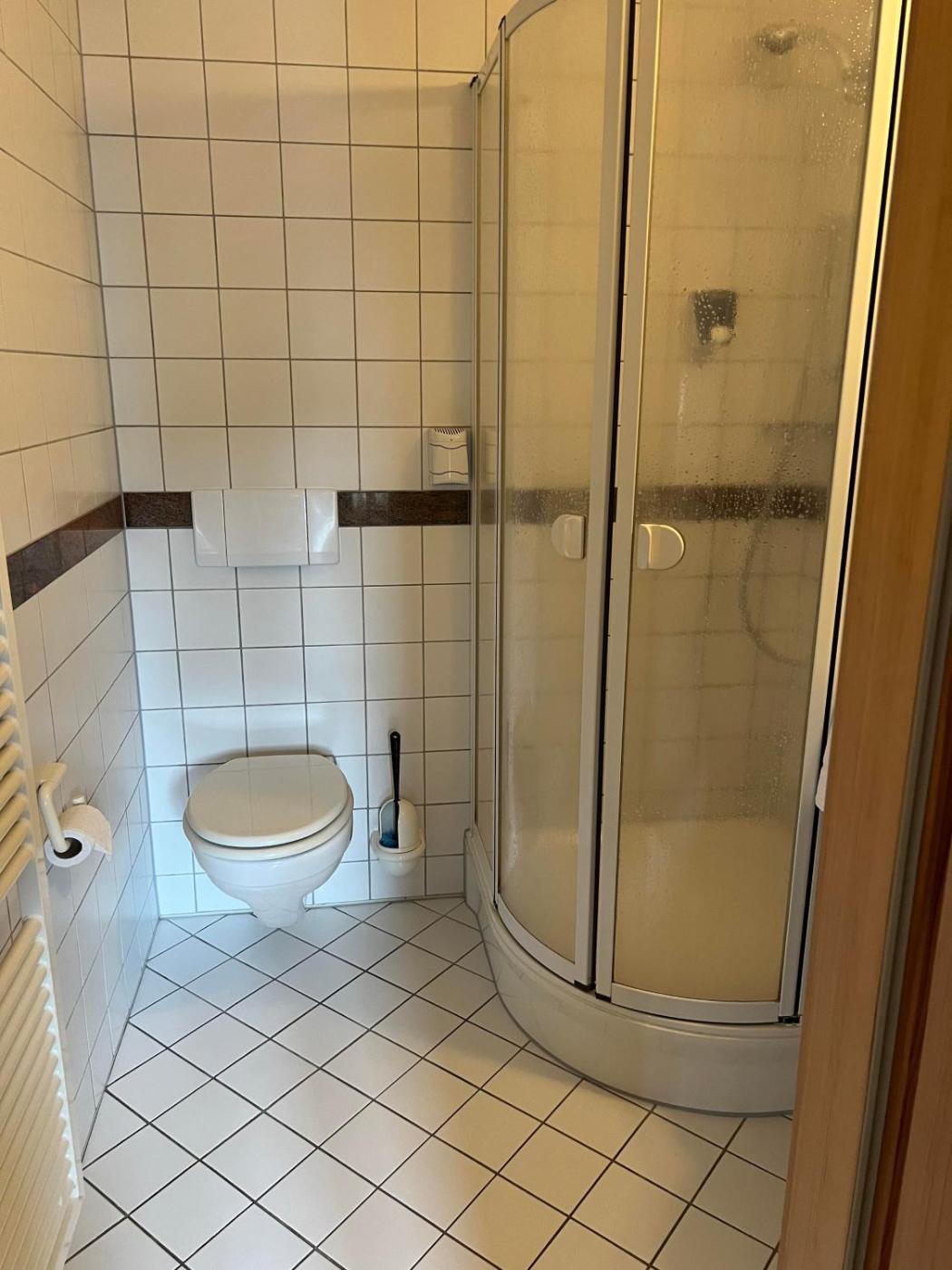 Einzelzimmer mit Dusche. Providing free toiletries, this single room includes a private bathroom with a shower and a hairdryer. The single room is furnished with a desk and a seating area and provides a wardrobe and heating. The unit offers 1 bed. ;