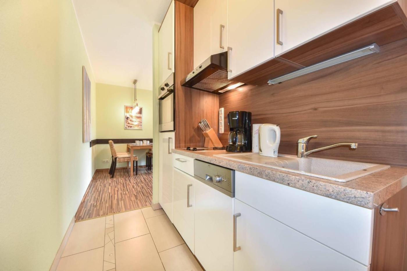 Apartment mit Terrasse. This apartment includes 1 living room, 1 separate bedroom and 1 bathroom with a shower and a hairdryer. The fully equipped kitchen has a stovetop, a refrigerator, a dishwasher and kitchenware. Boasting a terrace, this apartment also offers a coffee machine, a seating area and a TV with cable channels. The unit has 2 beds.