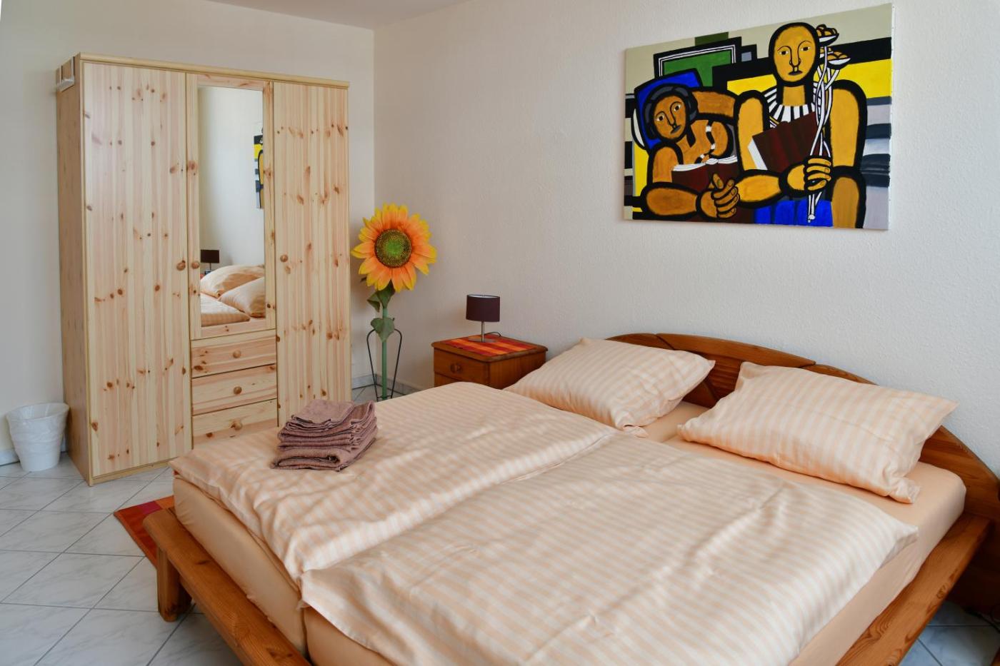 Apartment mit 2 Schlafzimmern. Diese geräumige Ferienwohnung umfasst 1 Wohnzimmer, 2 separate Schlafzimmer sowie 1 Bad mit einer Dusche und kostenlosen Pflegeprodukten. In der gut ausgestatteten Küche sind ein Kochfeld, ein Kühlschrank, ein Geschirrspüler und Küchenutensilien vorhanden. Die Ferienwohnung bietet eine Waschmaschine, einen eigenen Eingang, schallisolierte Wände, einen Flachbild-Sat-TV und Gartenblick. In dieser Wohneinheit befinden sich 5 Betten.