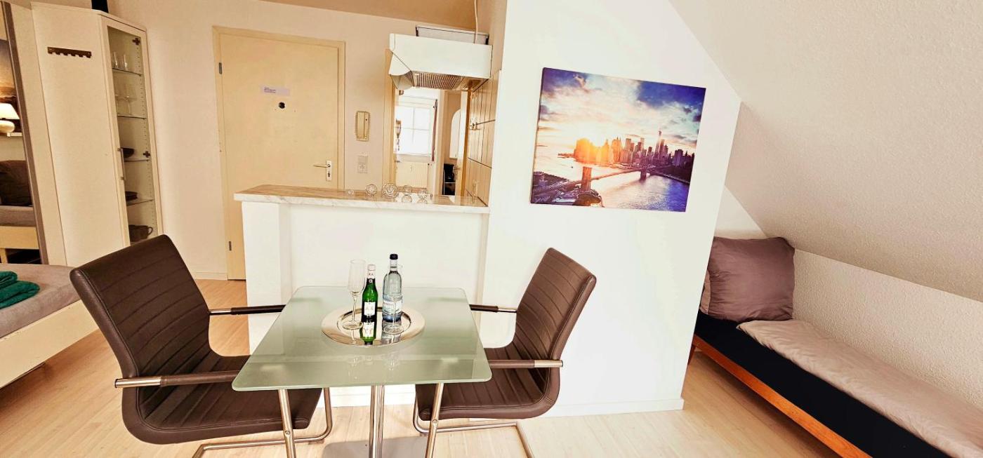 Studio-Apartment. This apartment features a kitchenette, a seating area, 1 separate bedroom and 1 bathroom with a bath or a shower and a hairdryer. Meals can be prepared in the kitchenette, which features a stovetop, a refrigerator, kitchenware and a toaster. This apartment has a coffee machine, flat-screen TV with streaming services, city views, as well as winechampagne for guests. The unit has 1 bed. ;