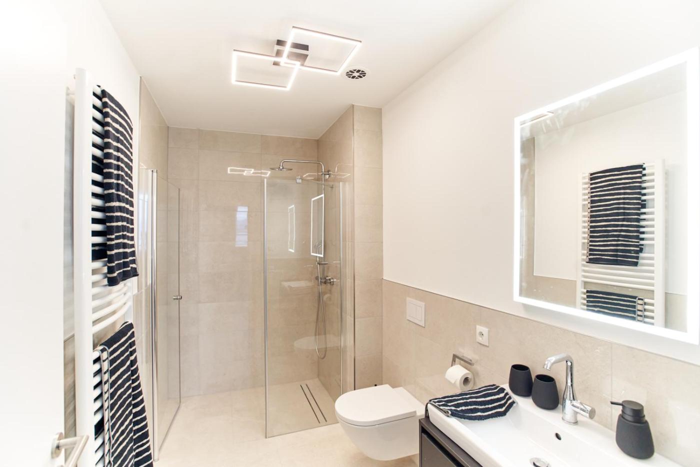 Apartment mit 1 Schlafzimmer. The fireplace is a top feature of this apartment. This spacious apartment comes with a kitchen, a seating area, 1 separate bedroom and 1 bathroom with a walk-in shower and a hairdryer. Meals can be prepared in the kitchen, which features a stovetop, a refrigerator, a dishwasher and kitchenware. This apartment has air conditioning, flat-screen TV, city views, as well as winechampagne for guests. The unit has 1 bed.