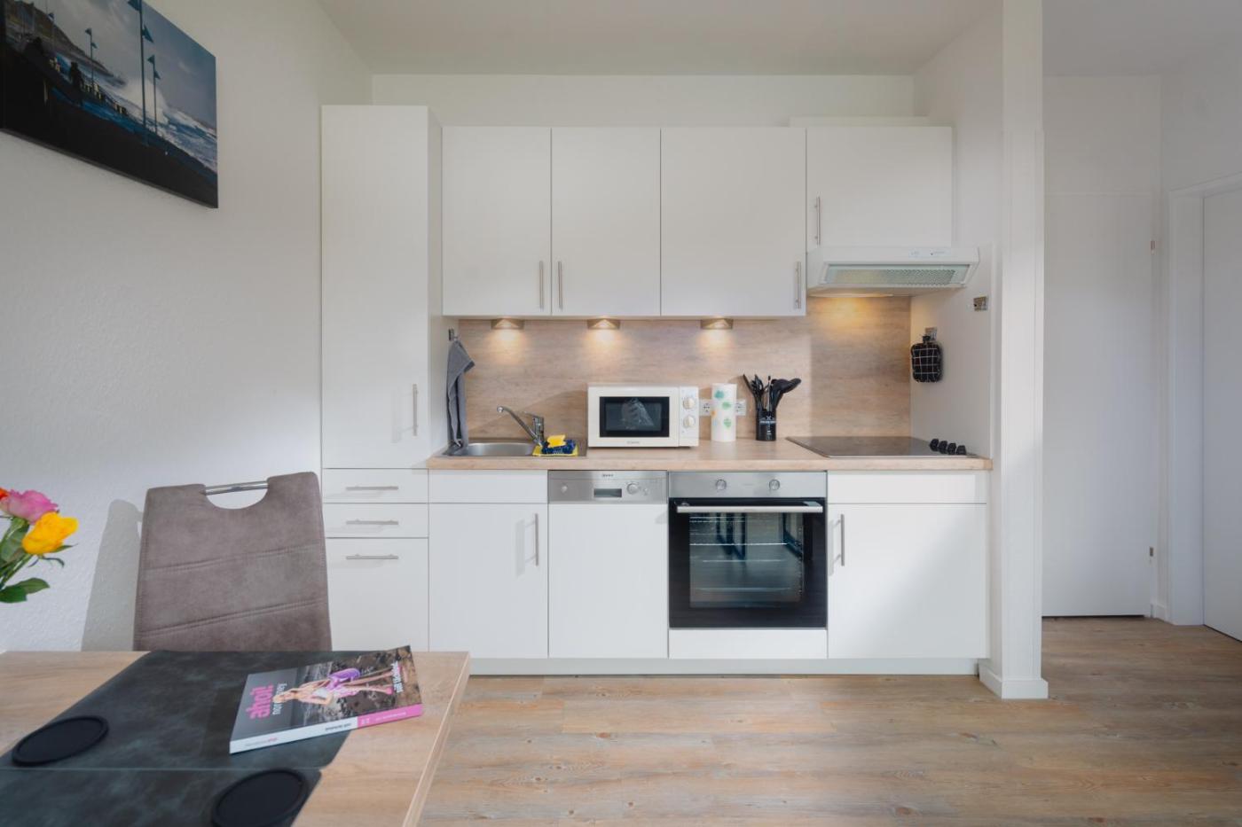Apartment mit 1 Schlafzimmer. This apartment is comprised of 1 living room, 1 separate bedroom and 1 bathroom with a shower and a hairdryer. In the well-fitted kitchen, guests will find a stovetop, a refrigerator, a dishwasher and kitchenware. The apartment offers a coffee machine, a seating area, a wardrobe, a sofa and a TV with cable channels. The unit offers 2 beds.