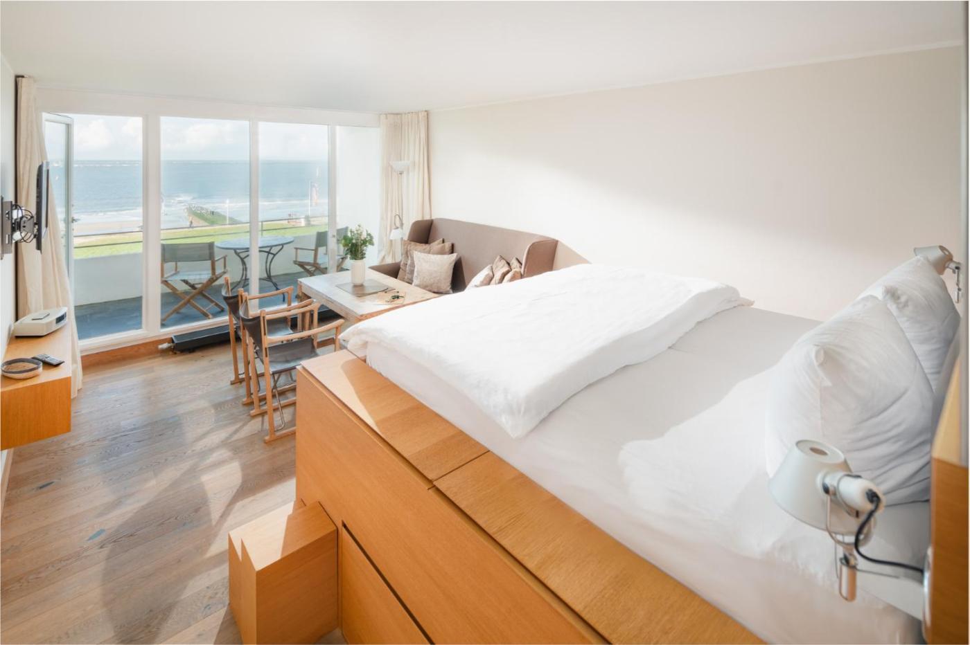 Apartment mit Meerblick. This apartment features a kitchen, a seating area, 1 separate bedroom and 1 bathroom with a shower and a hairdryer. The well-equipped kitchen has a stovetop, a refrigerator, a dishwasher and kitchenware. Boasting a balcony with sea views, this apartment also features a washing machine and a TV. The unit has 1 bed.