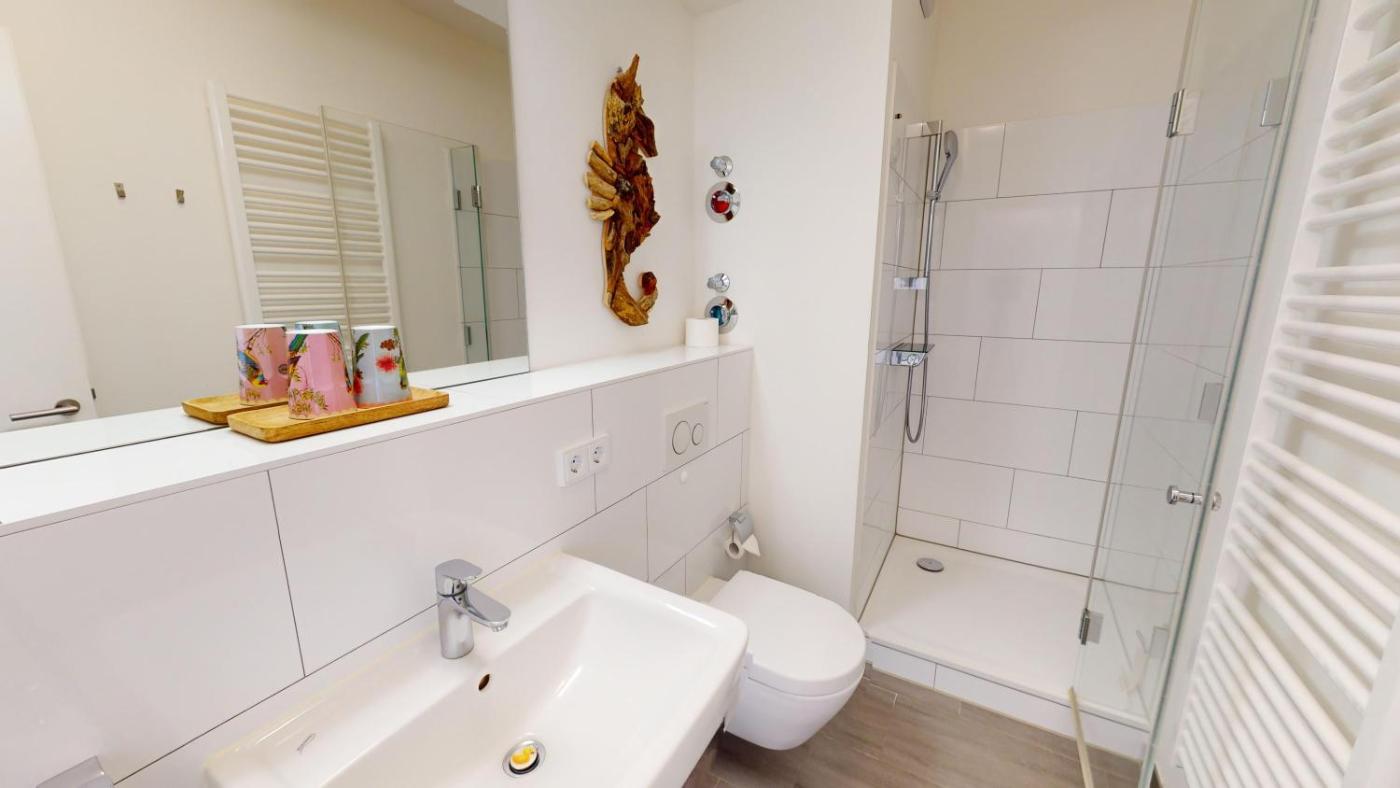 Apartment mit Meerblick. This apartments standout feature is the sauna. This spacious apartment is comprised of a kitchen, a seating area, 2 separate bedrooms and 2 bathrooms with a bath and a shower. In the well-equipped kitchen, guests will find a stovetop, a refrigerator, a dishwasher and kitchenware. Featuring a balcony with sea views, this apartment also offers a washing machine and a flat-screen TV with satellite channels. The unit offers 2 beds.