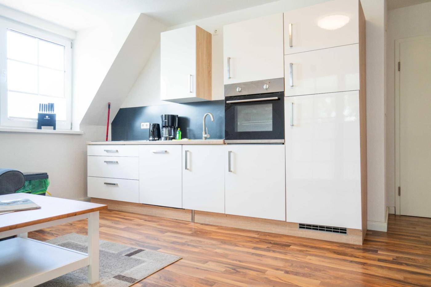Apartment mit 1 Schlafzimmer. This apartment features a kitchen, a seating area, 1 separate bedroom and 1 bathroom with a shower and a hairdryer. Guests can make meals in the kitchen that features a stovetop, a refrigerator, a dishwasher and kitchenware. Boasting an outdoor dining area, this apartment also features a coffee machine, a wardrobe and a TV with satellite channels. The unit has 1 bed.
