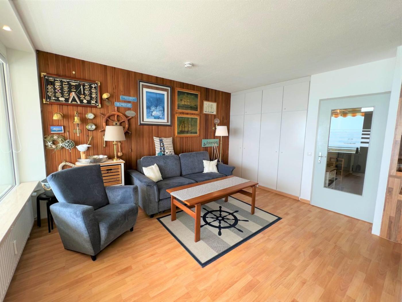 Apartment mit Meerblick. This apartment comprises 1 living room, 1 separate bedroom and 1 bathroom with a shower and a hairdryer. In the well-equipped kitchen, guests will find a stovetop, a refrigerator, a dishwasher and kitchenware. Featuring a balcony with sea views, this apartment also provides a washing machine and a TV. The unit offers 3 beds.