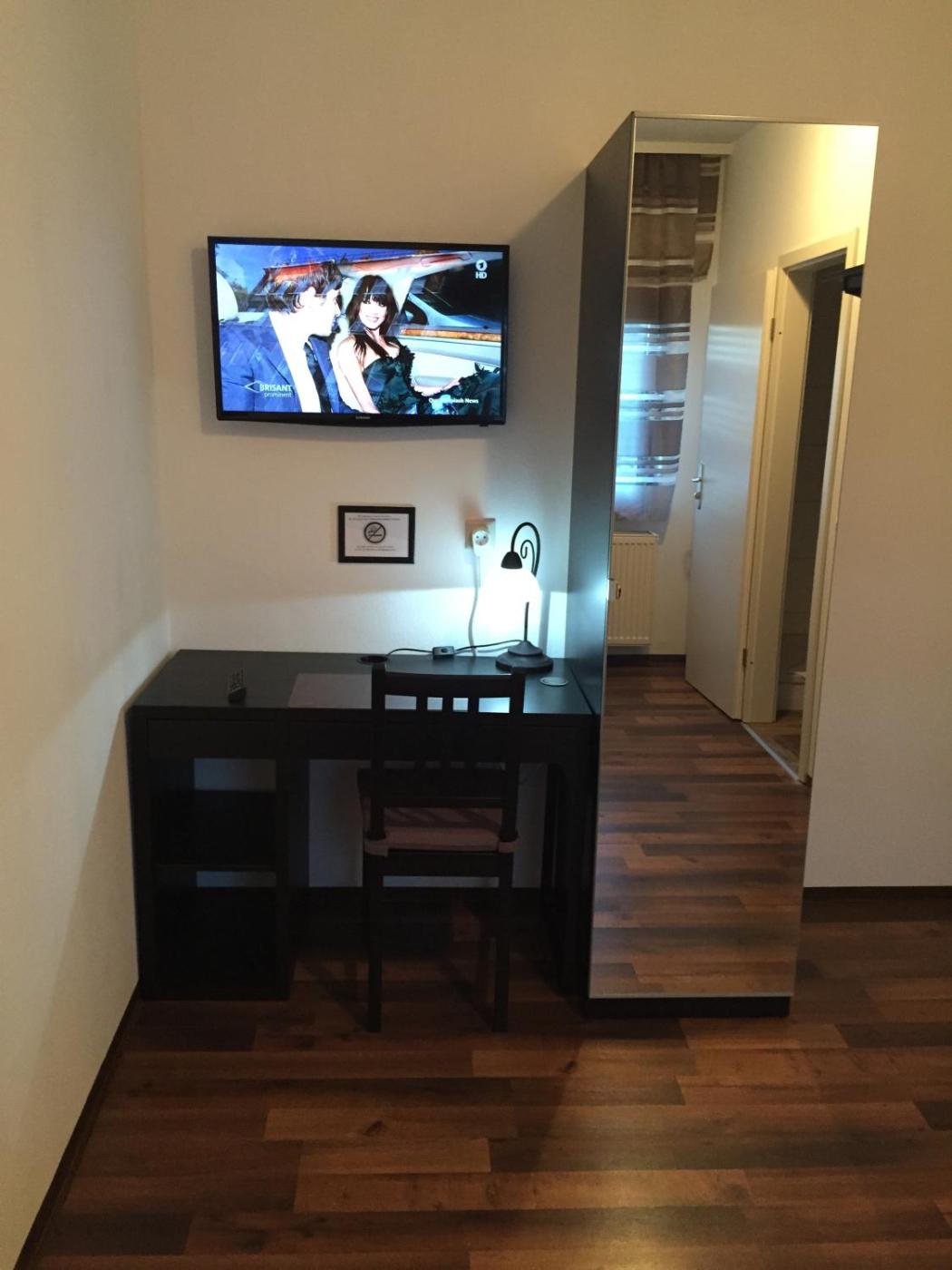 Einzelzimmer. Einfach eingerichtetes Zimmer mit Parkett, kostenfreiem WLAN und einem Flachbild-Kabel-TV. ;