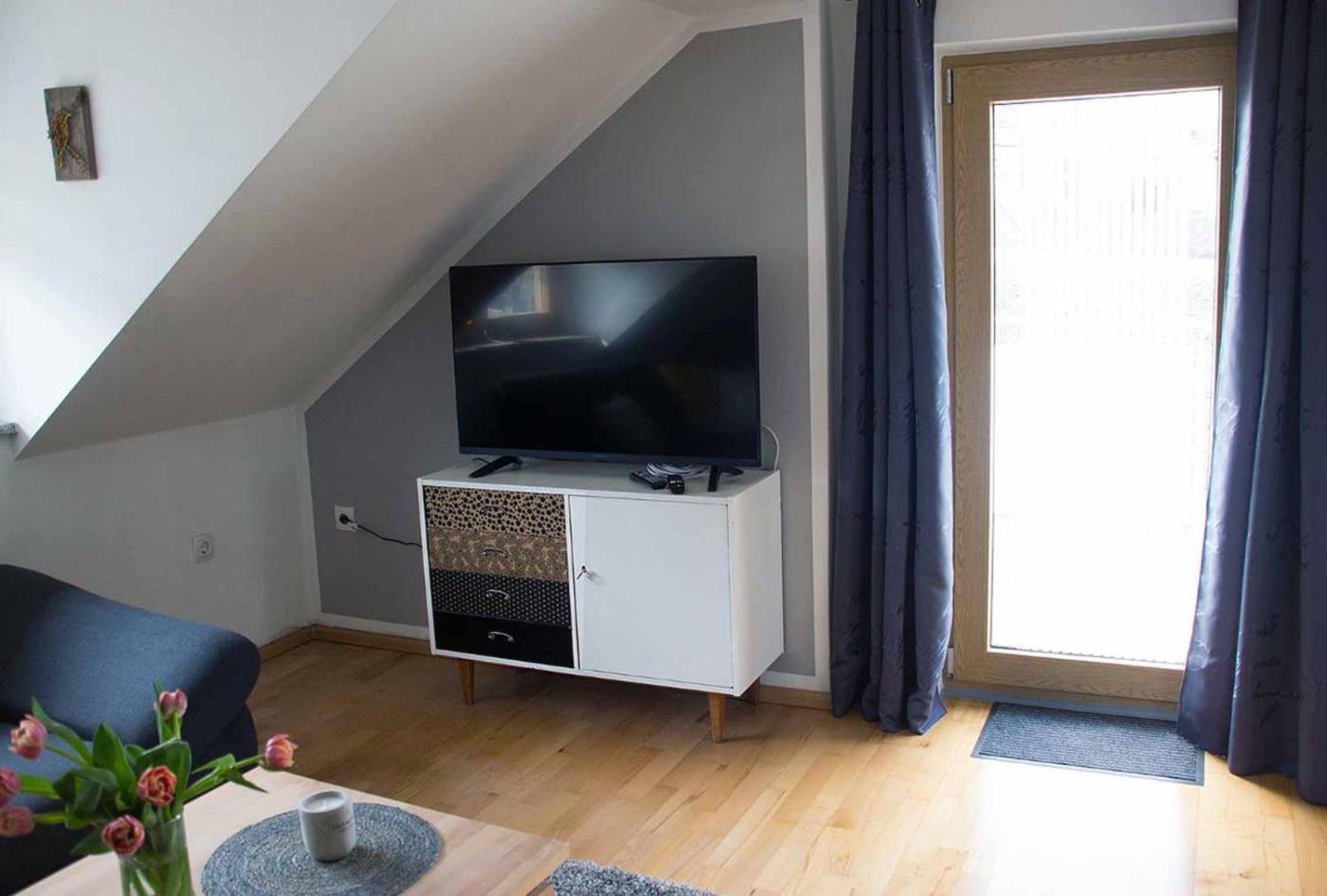 Apartment mit 1 Schlafzimmer. This apartment features 1 living room, 1 separate bedroom and 1 bathroom with a shower and a hairdryer. In the well-equipped kitchenette, guests will find a stovetop, a refrigerator, a dishwasher and kitchenware. A seating area with a TV, a coffee machine and a balcony are offered in this apartment. The unit has 2 beds.