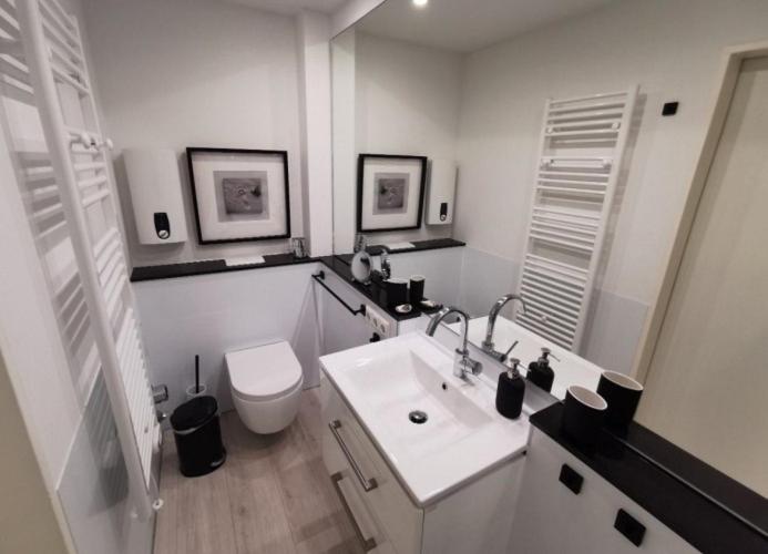Apartment mit 1 Schlafzimmer. This apartment is comprised of a kitchen, a seating area, 1 separate bedroom and 1 bathroom with a shower and a hairdryer. Guests can make meals in the kitchen that is fitted with a stovetop, a refrigerator, a dishwasher and kitchenware. The apartment offers a washing machine, a coffee machine, a wardrobe, a sofa, as well as a TV with cable channels. The unit offers 1 bed.
