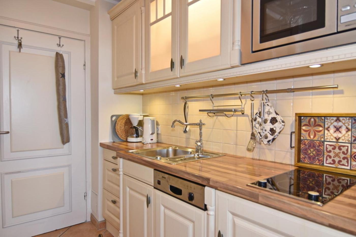 Diese Ferienwohnung ist ausgestattet mit einem Wohnzimmer und einer voll ausgestatteten Küchenzeile mit einem Kühlschrank und einer Herdplatte.