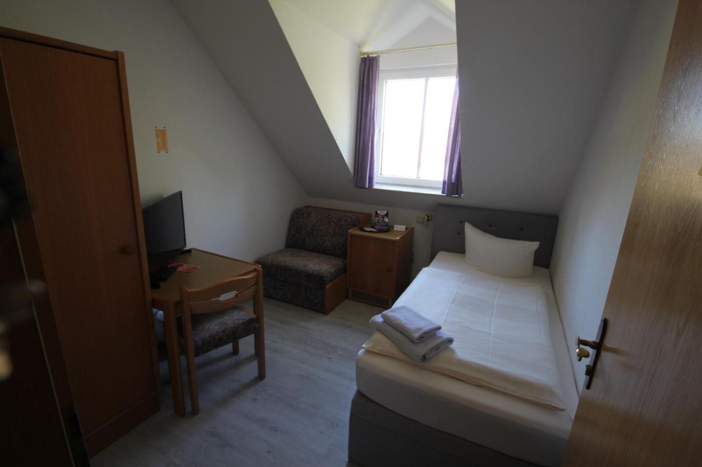 Standard Einzelzimmer mit Dusche. Neben kostenlosen Pflegeprodukten bietet dieses Einzelzimmer ein eigenes Bad mit einer Dusche und einem Haartrockner. Das Einzelzimmer mit Gartenblick verfügt über einen Flachbild-TV, einen Kleiderschrank, Parkettböden sowie eine Heizung. Die Wohneinheit ist mit 1 Bett ausgestattet. ;
