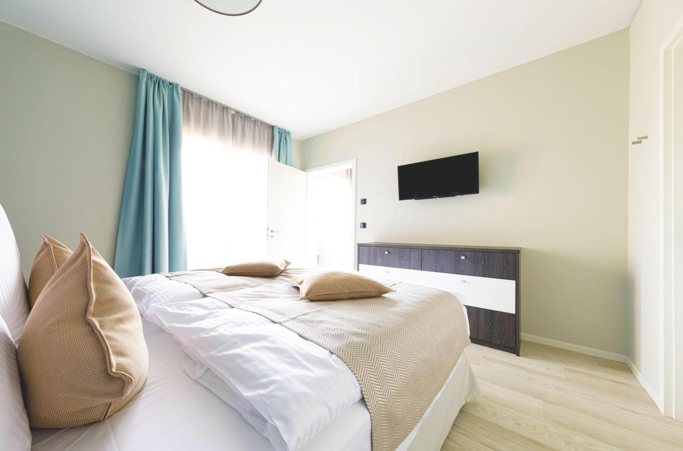 Apartment mit Balkon. This apartment provides a sauna. This apartment comprises 1 living room, 1 separate bedroom and 1 bathroom with a shower and a hairdryer. In the well-equipped kitchen, guests will find a stovetop, a refrigerator, a dishwasher and kitchenware. This apartment features a washing machine, a coffee machine, a TV and a balcony. The unit offers 2 beds.