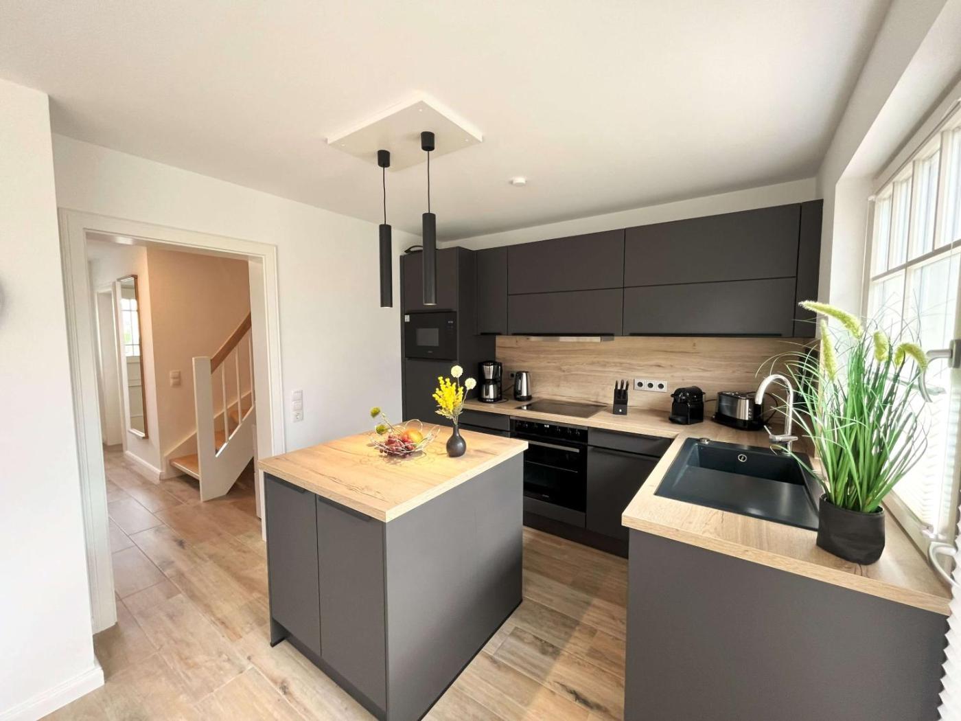 Haus mit 4 Schlafzimmern. The sauna and fireplace are the standout features of this holiday home. This holiday home is comprised of 1 living room, 4 separate bedrooms and 2 bathrooms with a walk-in shower and a bath. In the well-equipped kitchen, guests will find a stovetop, a refrigerator, a dishwasher and kitchenware. Featuring a terrace with garden views, this holiday home also offers a washing machine and a flat-screen TV with cable channels. The unit offers 5 beds.